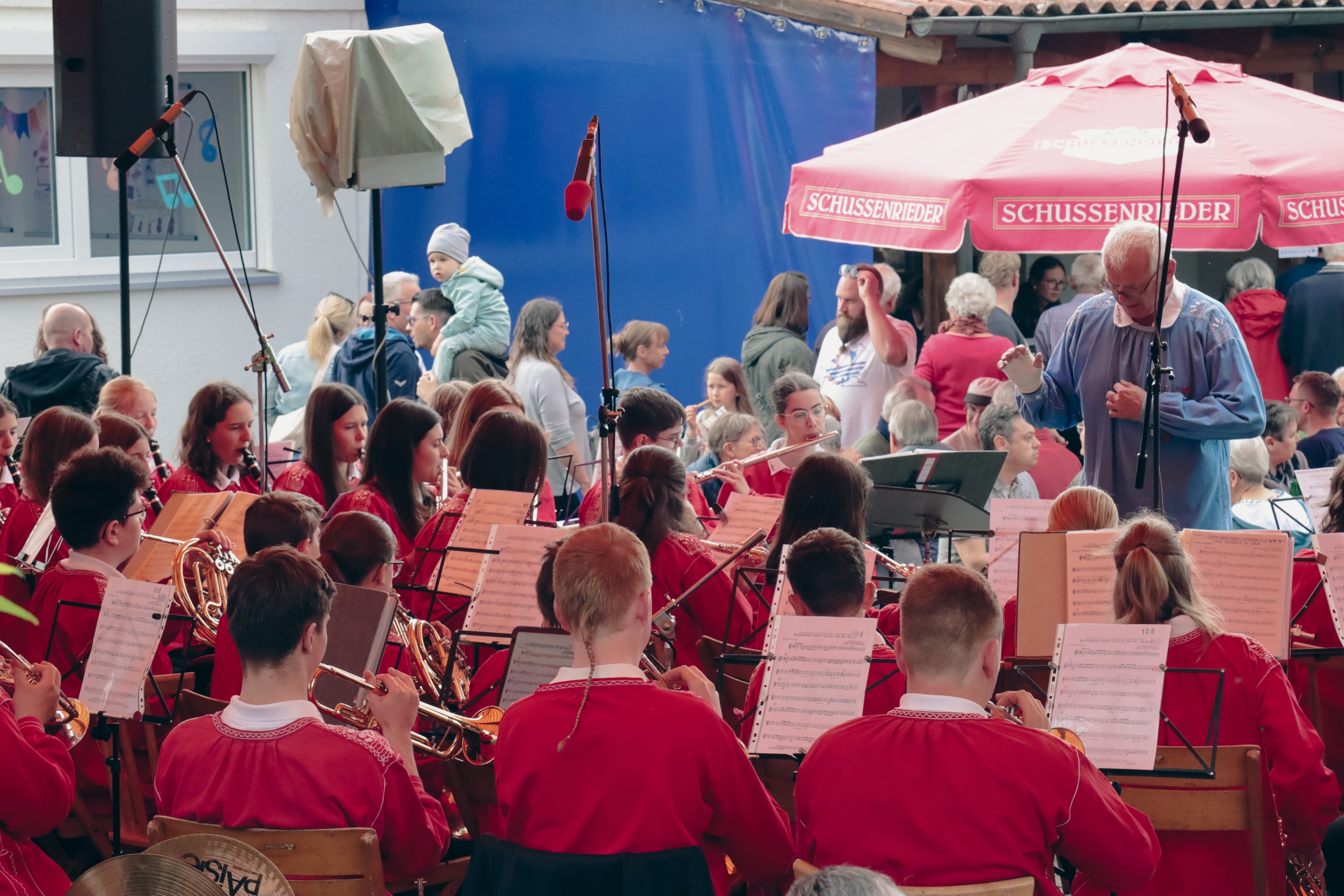 Den im Vorfeld bangen Blicken auf den Wetterbericht folgte am Donnerstag ein erfreulicherweise komplett trockener Festtag! Die vielen Gäste durften sich bei angenehmen Temperaturen mit Kaffee und Kuchen, Salaten, herzhaftem Mittagessen sowie einer riesigen Auswahl an Getränken und Eis versorgen. Die Kleinsten konnten sich unter anderem schminken lassen, im Garten spielen und sich zum allerersten Mal sogar in einer Hüpfburg austoben.
